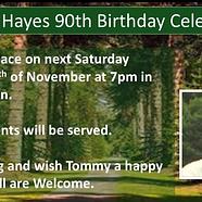 Reminder - There is an open invitation for all to attend Tommy Hayes' 90th birthday celebratio...