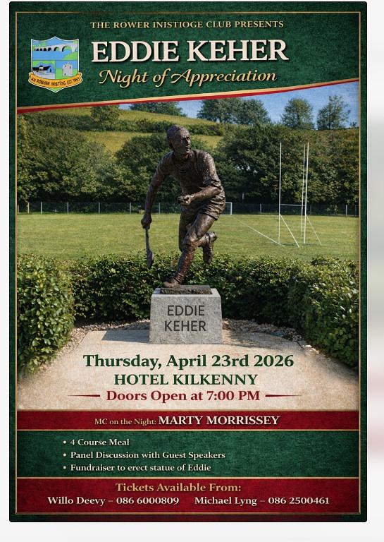 Rower-Inistioge GAA Club is proud to announce a special Corporate Fundraiser to support the erection of a permanent statue in honour of Eddie Keher, one of the greatest players ever to grace the game of hurling.